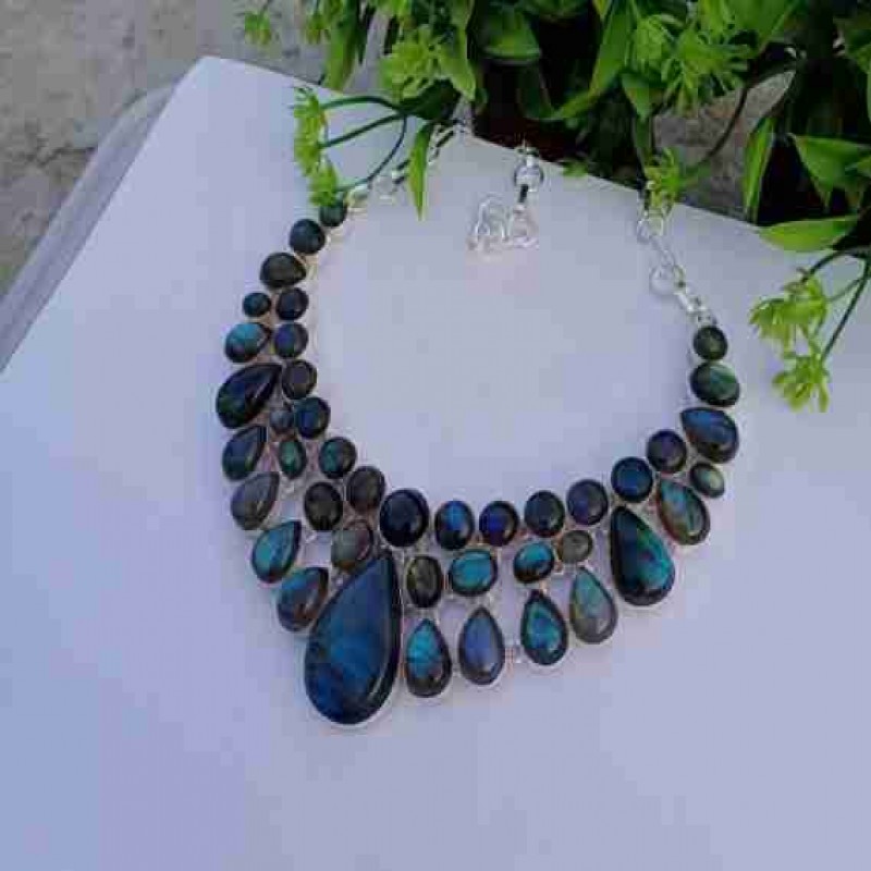 Doğal Labradorit Kolye, gümüş kaplama kolye, Boho Kolye, Kadına Hediye, İfadeli Kolye