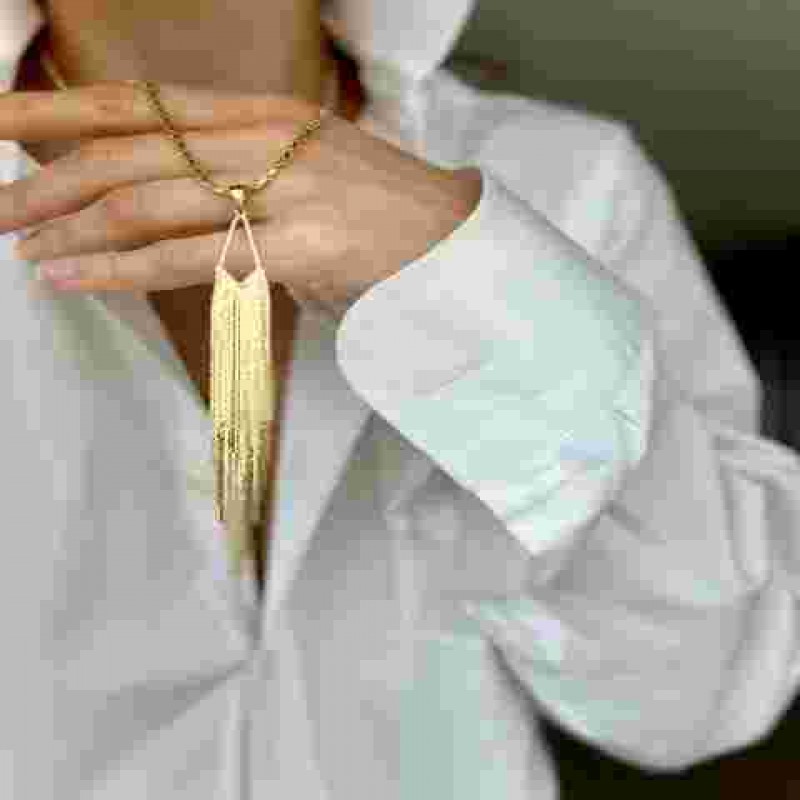 Altın Püskül Kolye | Altın Kaplama ARTI daha fazla dayanıklılık için 12 volt elektrokaplama | Tek Saçak:
