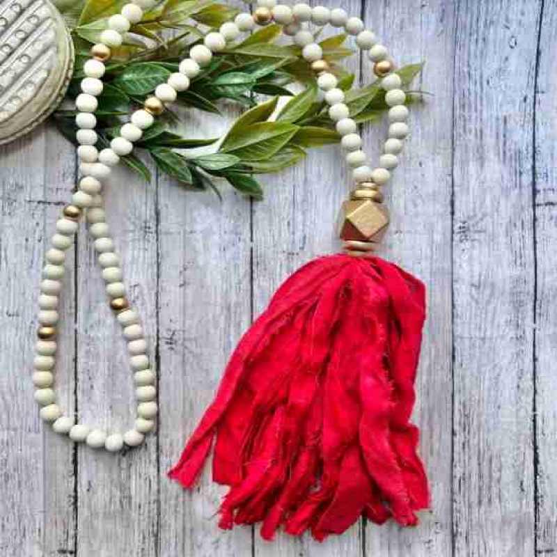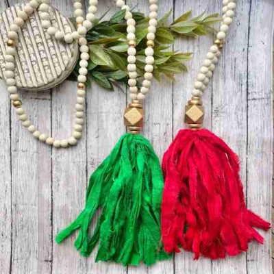 Kırmızı püskül kolye, Kırmızı Kumaş Püskül kolye. İpek kumaş püskül. Noel püskülleri. NC Eyaleti. UGA Gürcistan Kırmızısı. Kumaş Püskül Kolye.