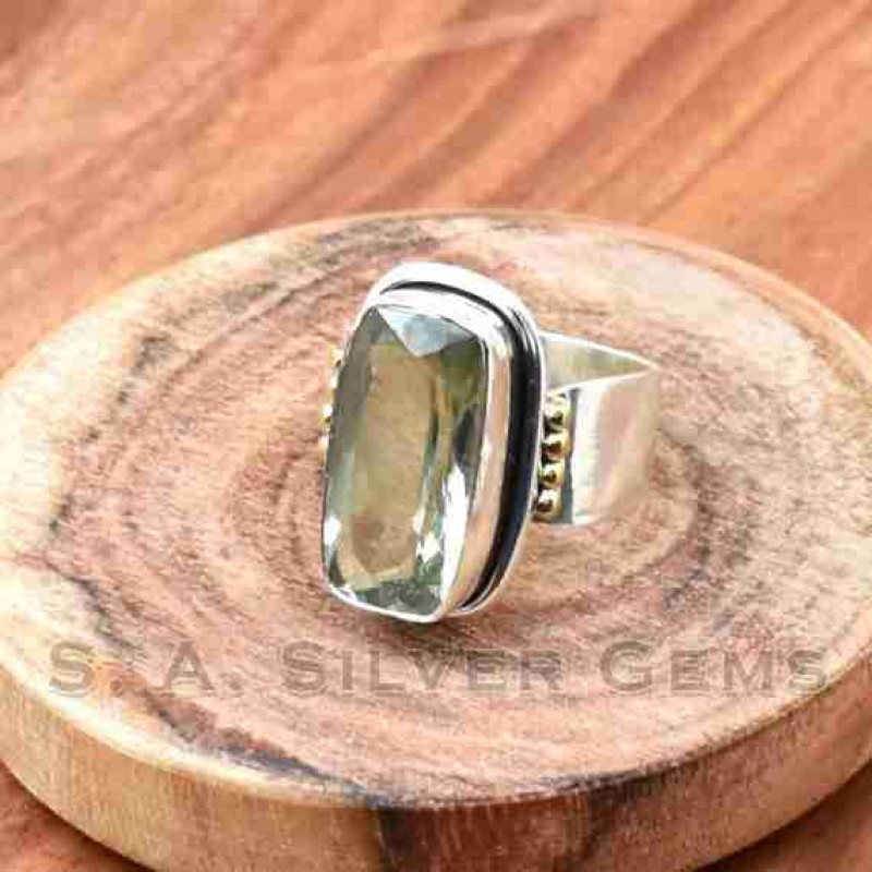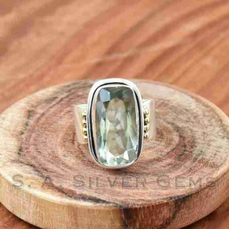 925 Ayar Gümüş Yüzük, Doğal Yeşil Ametist Yüzük, Geniş Bant Yüzük, İki Ton Yüzük,Alyans,Ge