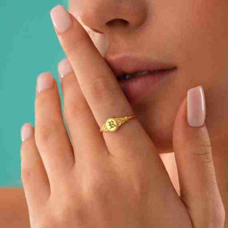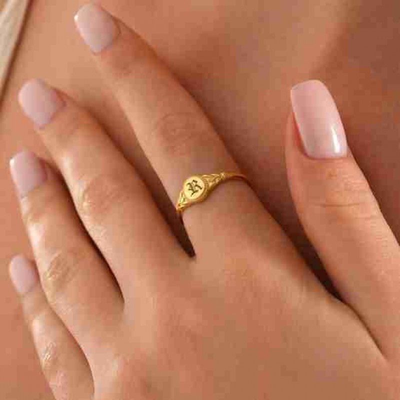 Kişiye Özel Vintage Gotik Yüzük, Özel Harfli Mühür Yüzük, Zarif gotik takılar, Kişiye Özel Hediye
