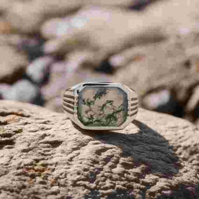 Doğal Yosun Akik Yüzük, 925 Ayar Gümüş Yüzük, Yosun Akik Erkek Yüzük, Söz Yüzüğü, Kendisine Hediye 1050.0 TL |