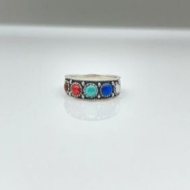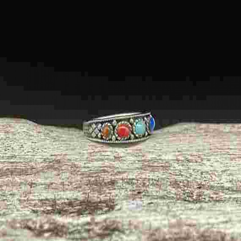 Çok Taşlı Gümüş Yüzük // 925 Ayar Gümüş // 5'ten 10'a Kadar Ölçüler