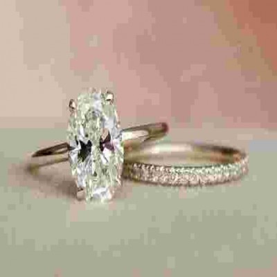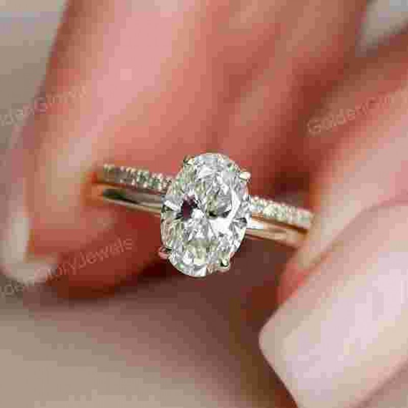 2 Ct Oval Kesim Mozanit Alyans Seti, Mozanit Nişan Yüzüğü Seti, Vintage Gelin Seti, Art D 10881.5 TL |