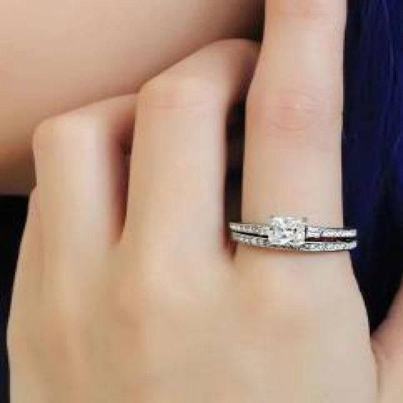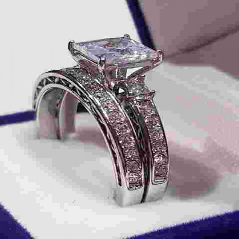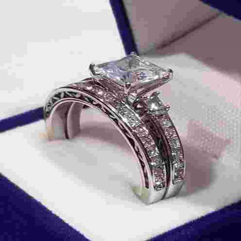 Tasfiye Satışı 2.50 Ct Prenses Tektaş Nişan yüzüğü yarım Sonsuzluk Bandı Alyans seti cz Sta 1606.5 TL |