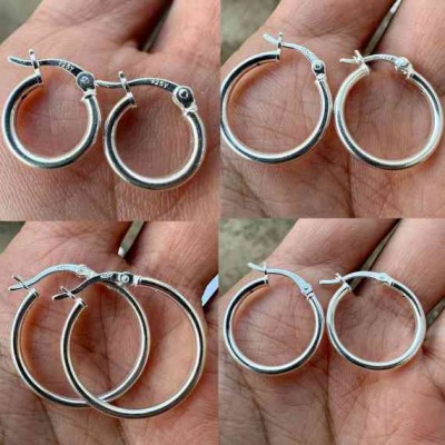 Gümüş Halkalar, 925 Ayar Gümüş Halka Küpeler, Yuvarlak Halka Küpeler, İğneli Küpeler, Sil