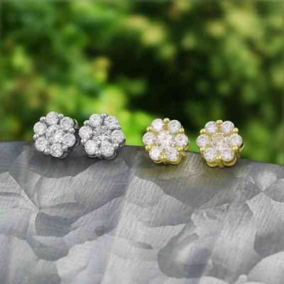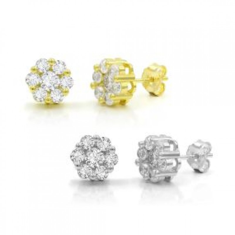 CZ Çiçek Salkım Küpeler 925 Gümüş Kaplama veya Sarı Altın ve Beyaz Altın Renkli Küpeler S
