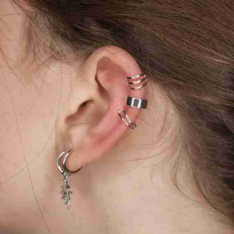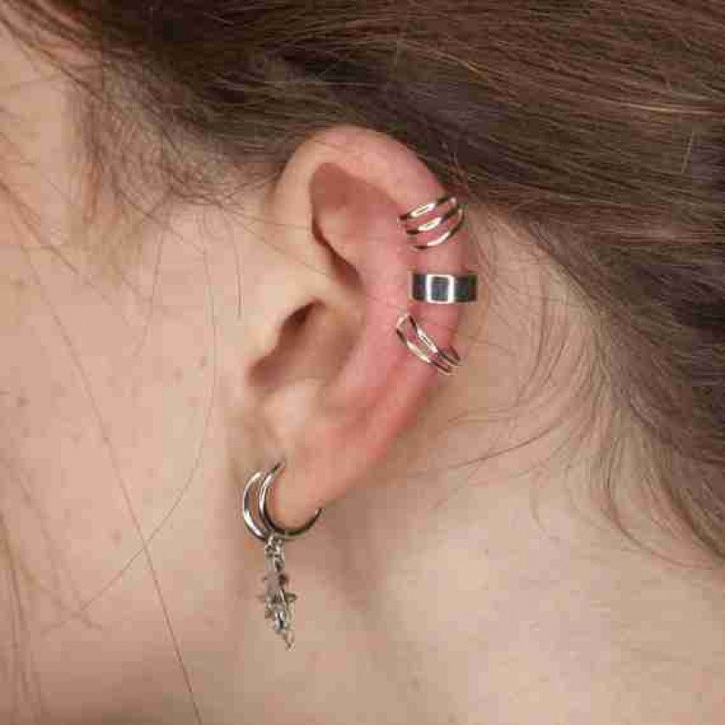 3 SET Wrap 925 Ayar Gümüş Klipsli Küpe Kulak Manşet Olmayan Kadınlar Için Olmayan Delici Küpe J 682.5 TL |