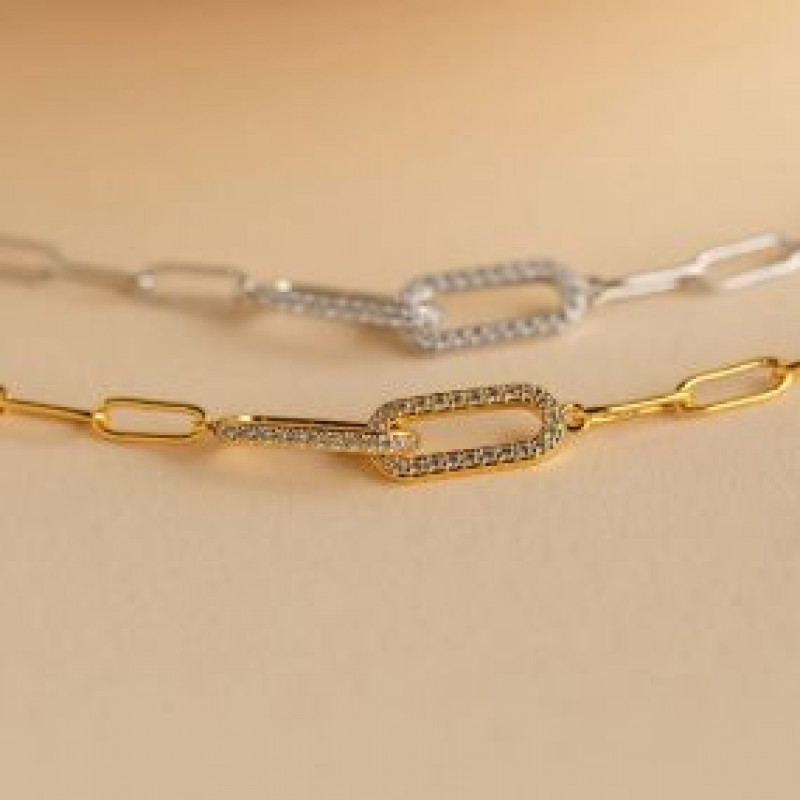 Caitlyn Minimalist'ten Pave Pırlanta Bağlantılı Bileklik • Zarif Ataçlı Zincir Bileklik • Minimalist