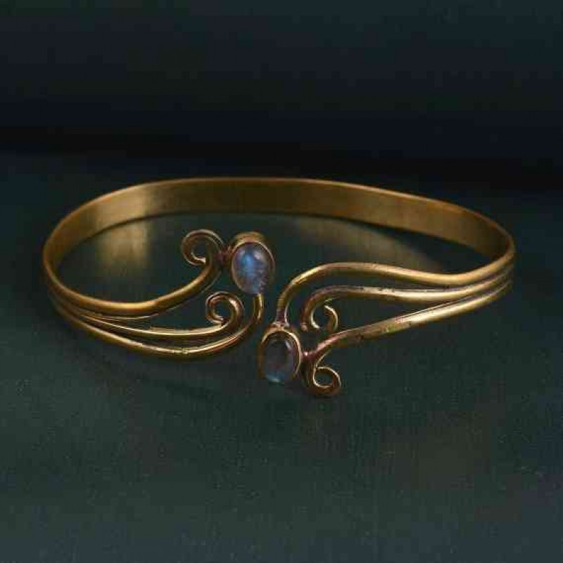 Labradorit Minimalist Kol Manşet, Altın Kol Bandı, Altın Üst Kol Manşet Bileklik, Girdaplı Kol Bandı