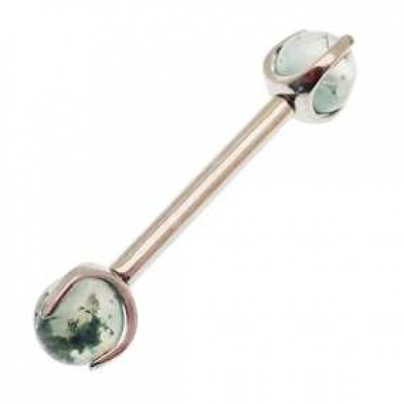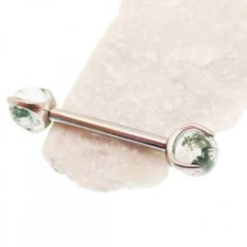 MOSS AGATE İmplant Titanyum içten dişli pençe seti opal meme çubuğu halkaları - 12G 14G implant tita