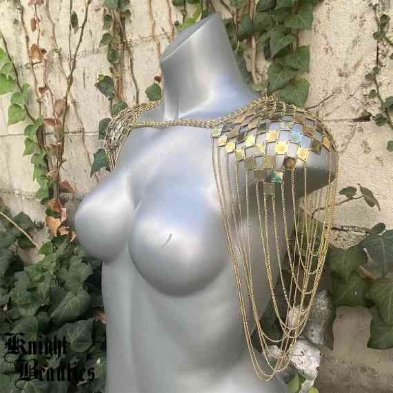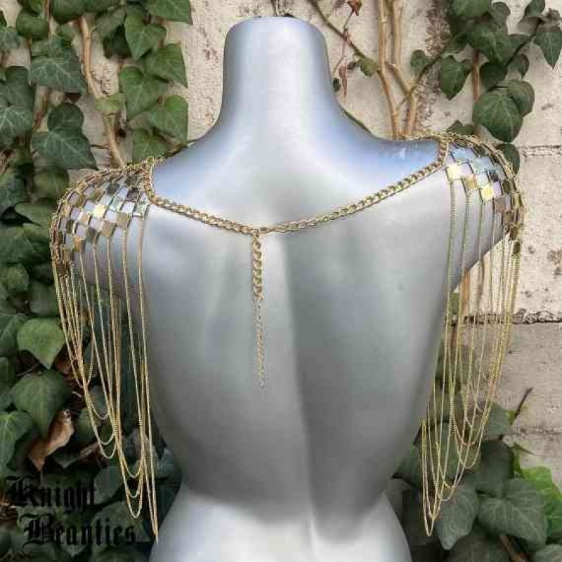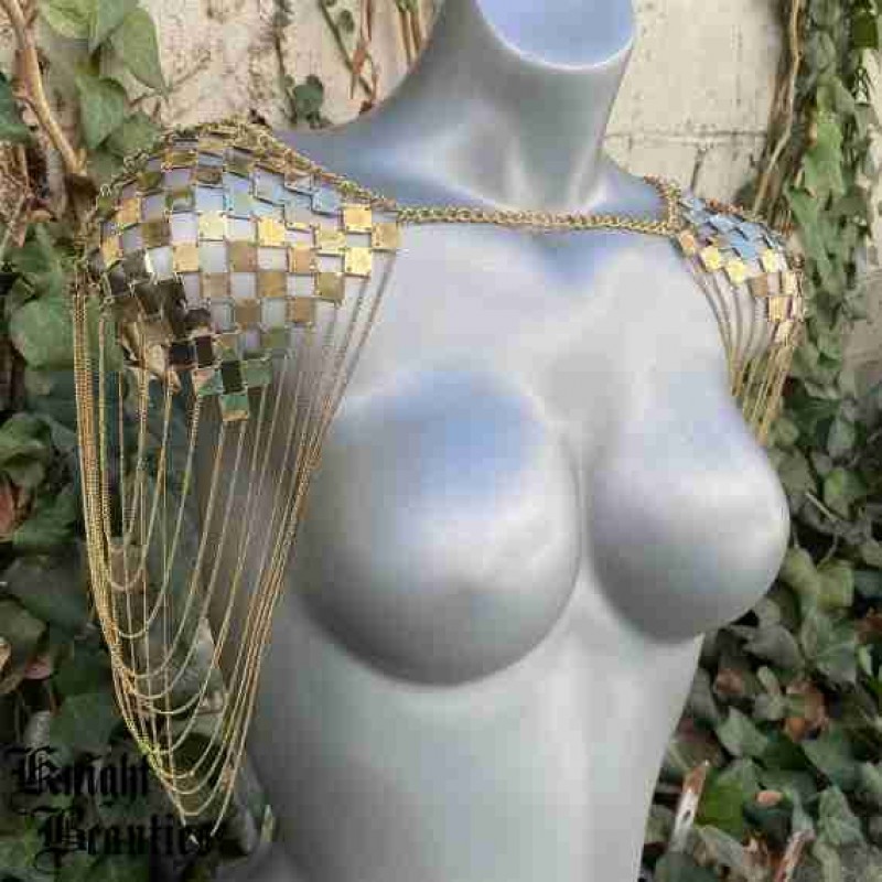 Altın Omuz takıları, Zincir takılar, Vücut takıları, festival takıları, rave giyim, yanan adam akses