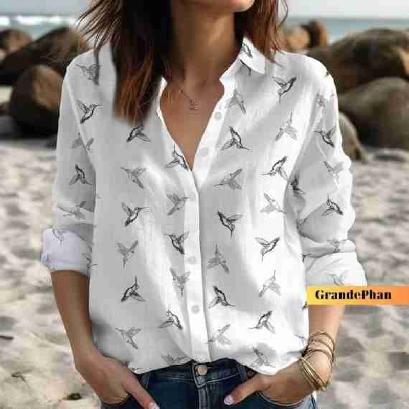 Sinek Kuşu Gömlek, Sinekkuşu Keten Gömlek, Bayan Giyim, Keten Bluz, Bayan Gömlek, Hummingb