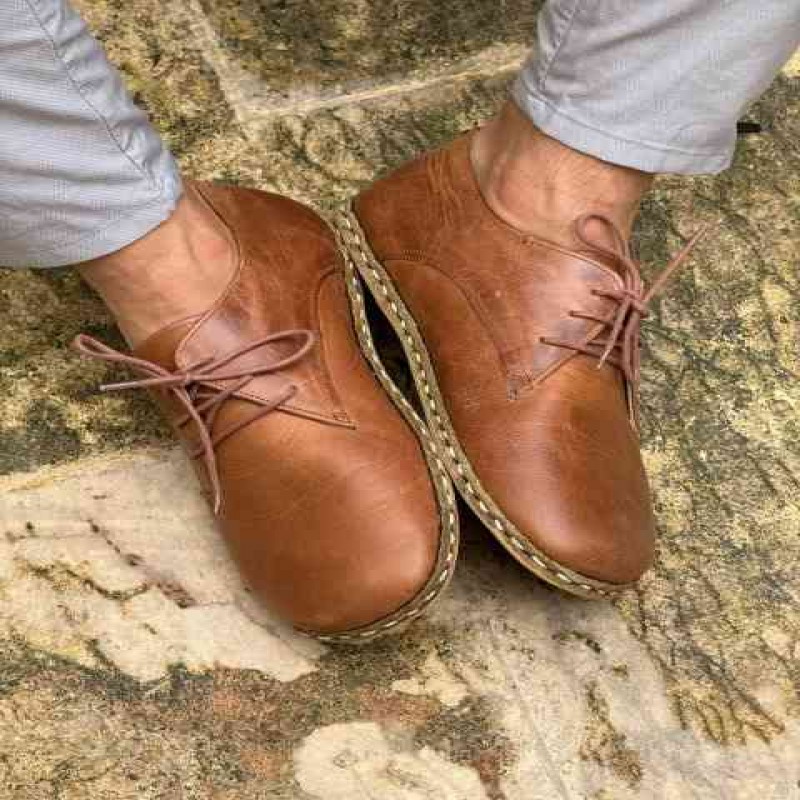 Erkek Oxford Antik Kahverengi Ayakkabı,Topraklama Ayakkabısı,Deri Ayakkabı, Deri Geniş Burunlu Yalın