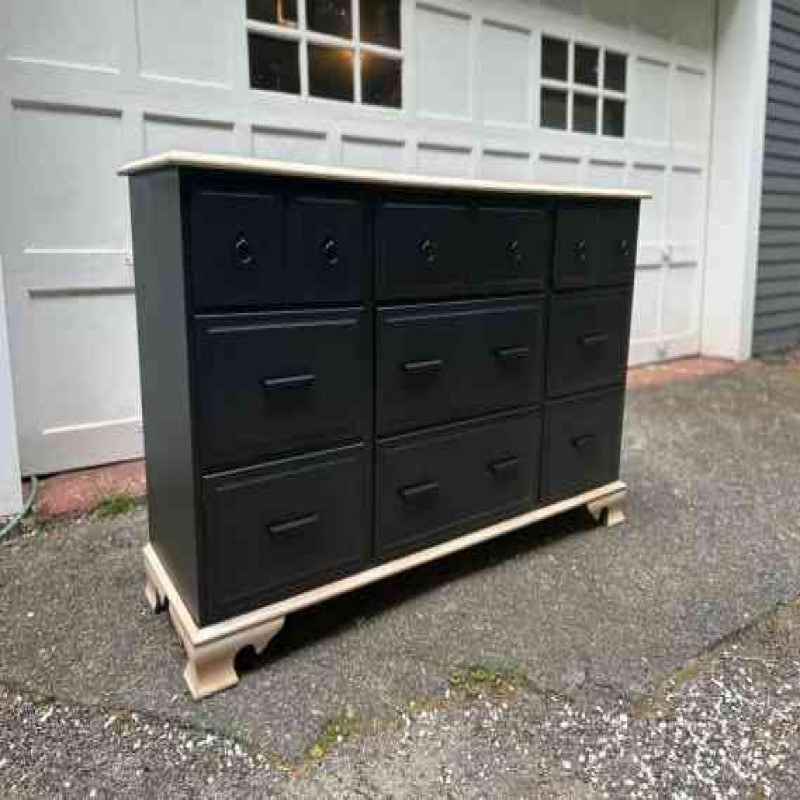 SATILDI Mesajınızla Siparişinizi Verin - Siyah 9 Çekmeceli Şifonyer Büro Yenilenmiş Vintage Yatak Od