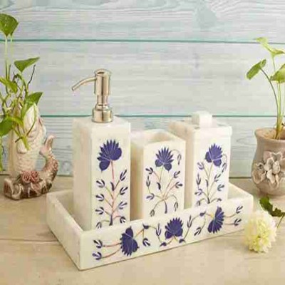 Mükemmel Banyo Hediye Seti: Yeni eve taşınma partisi, düğün veya herhangi bir özel gün için, mavi çiçek desenli beyaz mermer banyo aksesuarları setimiz, sevdikleriniz için zamansız ve zarif bir hediye seçimi yapar.