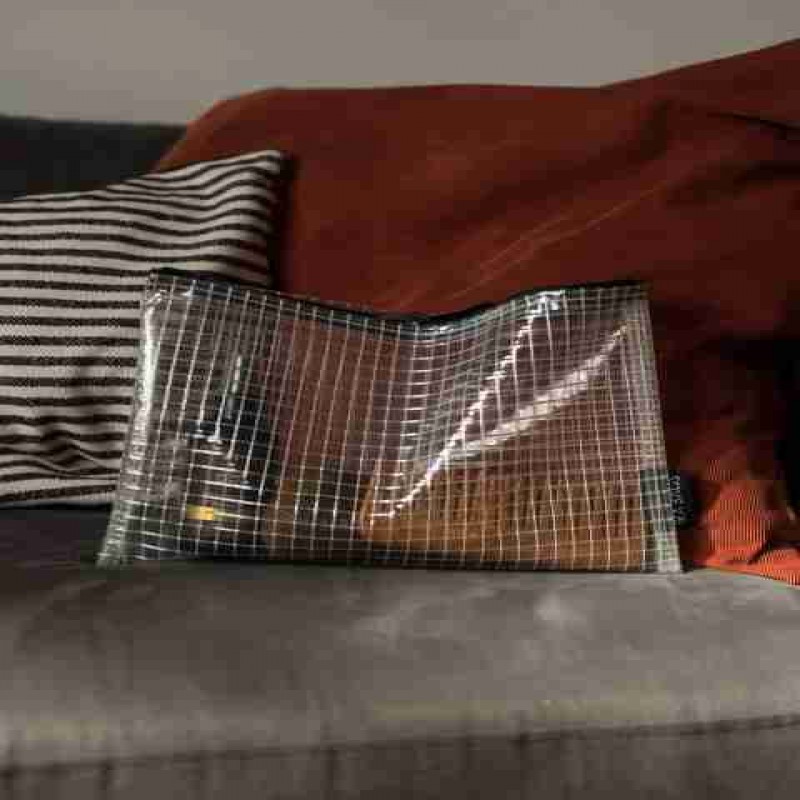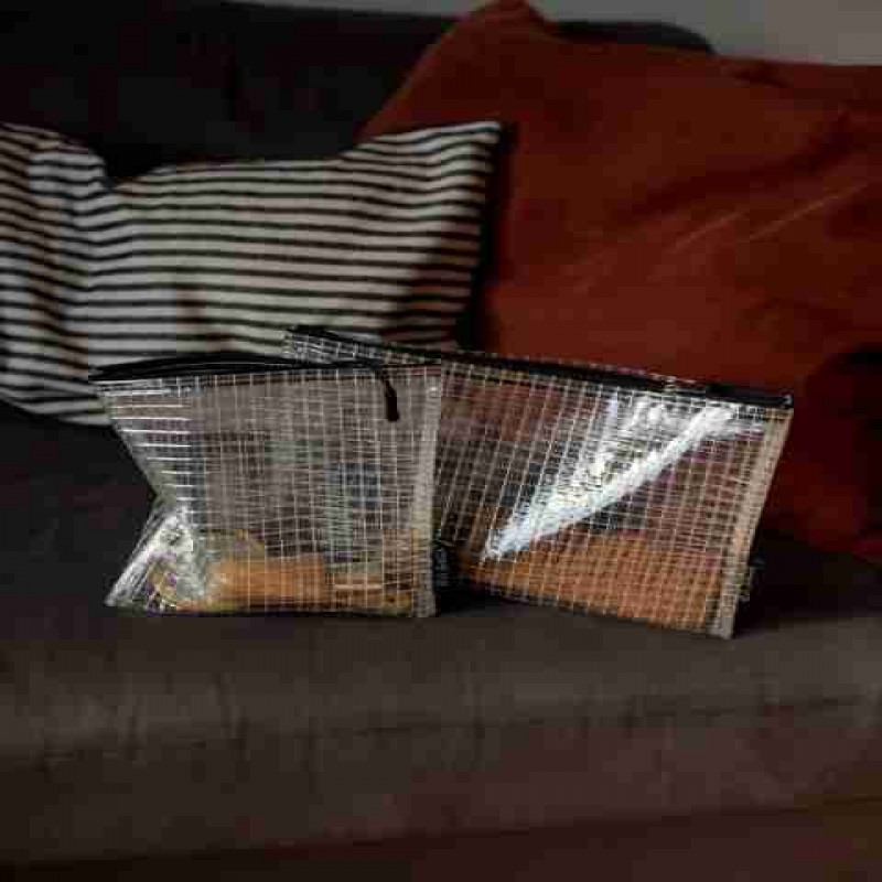 Bu basit tasarımlı çantaları, günlük ihtiyaçlarınız için kullanabilirsiniz. Yumuşak ve şeffaf PVC malzemeden yapılmış, beyaz dokulu file ile tamamlanmış ve siyah fermuarla bitirilmiştir. Tüm şeffaf çantalarımız suya dayanıklıdır ve temizlemesi kolaydır.