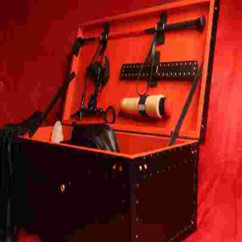 Seks oyuncakları ve BDSM ekipmanları için el yapımı sandık.