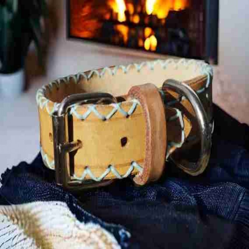 Özel El Boyalı Deri Köpek Tasması, El İşlenmiş Köpek Tasması, İşlenmiş Deri Evcil Hayvan Tasması, Ka