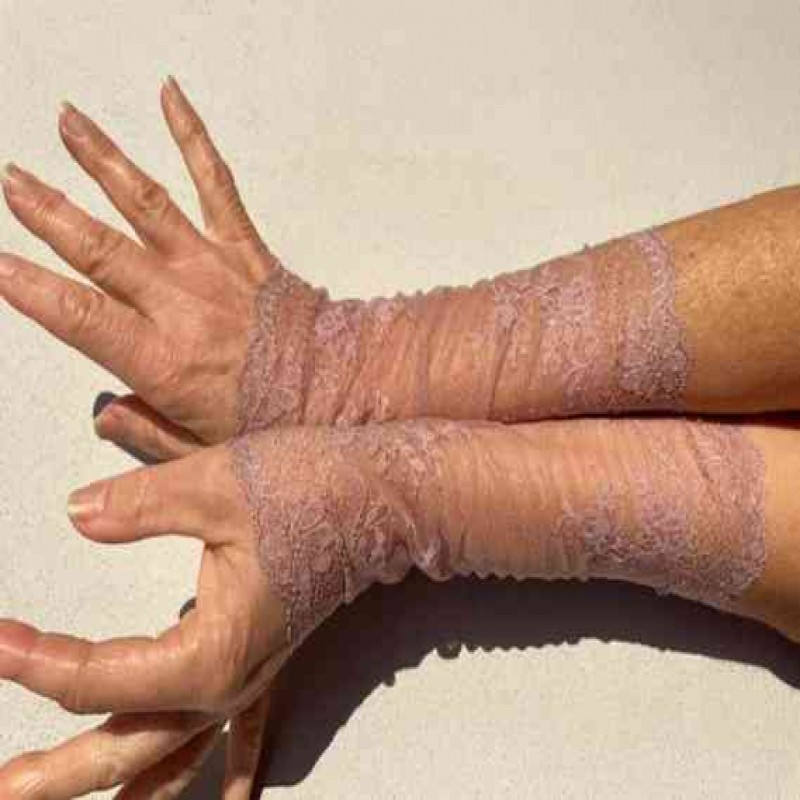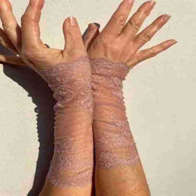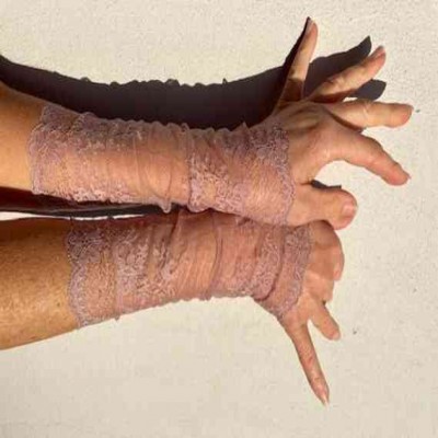 "Harika el yapımı eldivenler, gül renginde. Fransız lancesinden yapılmış M beden eldivenler. Eğer özellikle aradığınız bir şey varsa, bize bildirin."