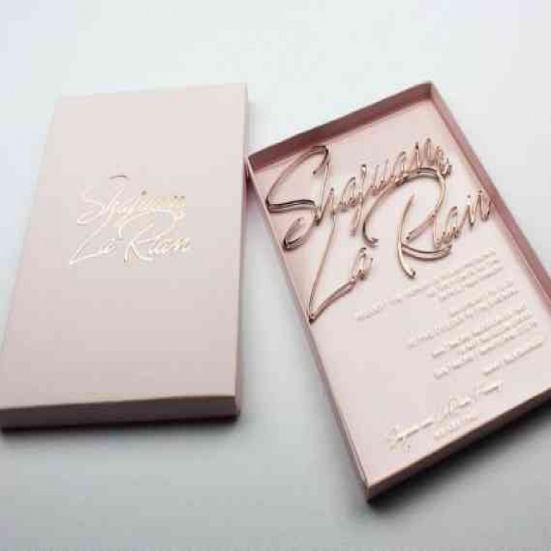 Gül Altın Varak Düğün Davetiyeleri, Gül Altın Akrilik Davetiyeler, Pembe Kutular, Zarif Davetiye, Öz