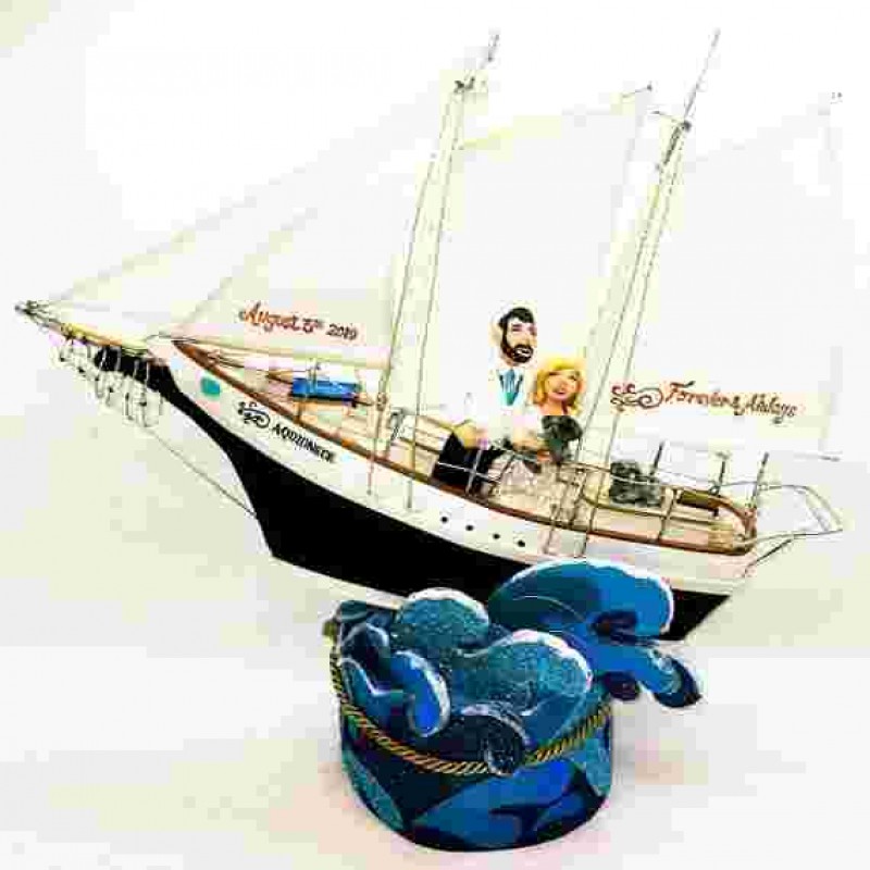 Özel Yelkenli Düğün Pastası kaban, Denizcilik Yat düğünü kişiselleştirilmiş merkez parçası B1