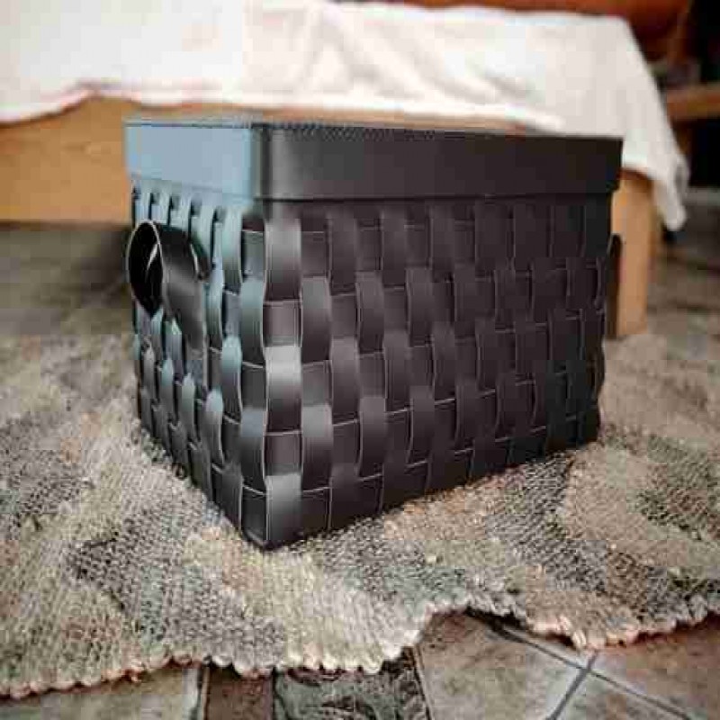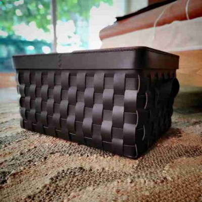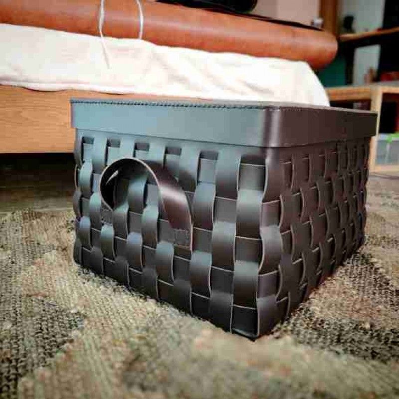 Saklama kutusuna uygun kapaklı deri sepet - Kahverengi saplı dokuma deri saklama kabı