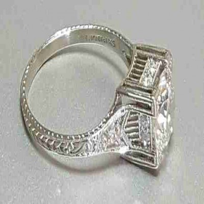 Mükemmel durumda antika platin güzel elmas yüzük.