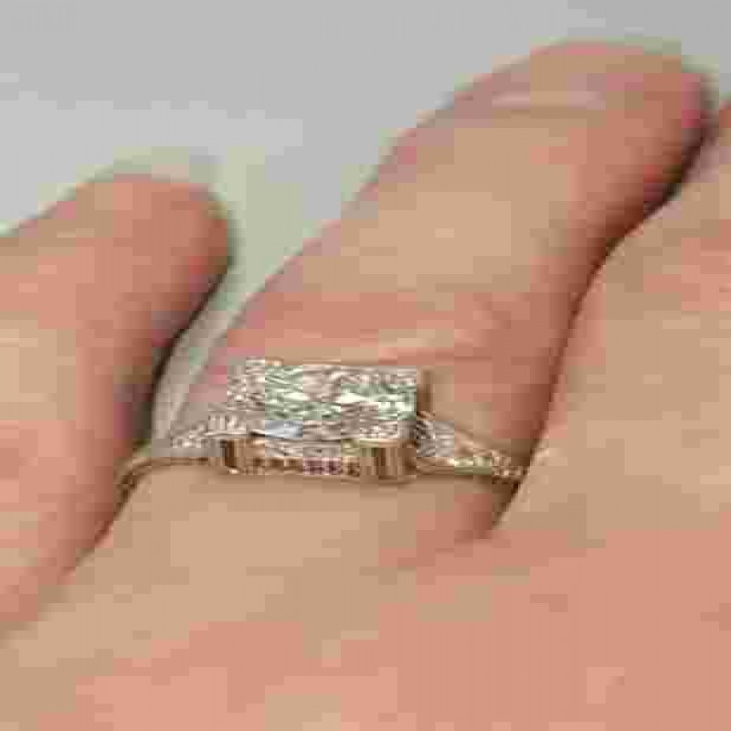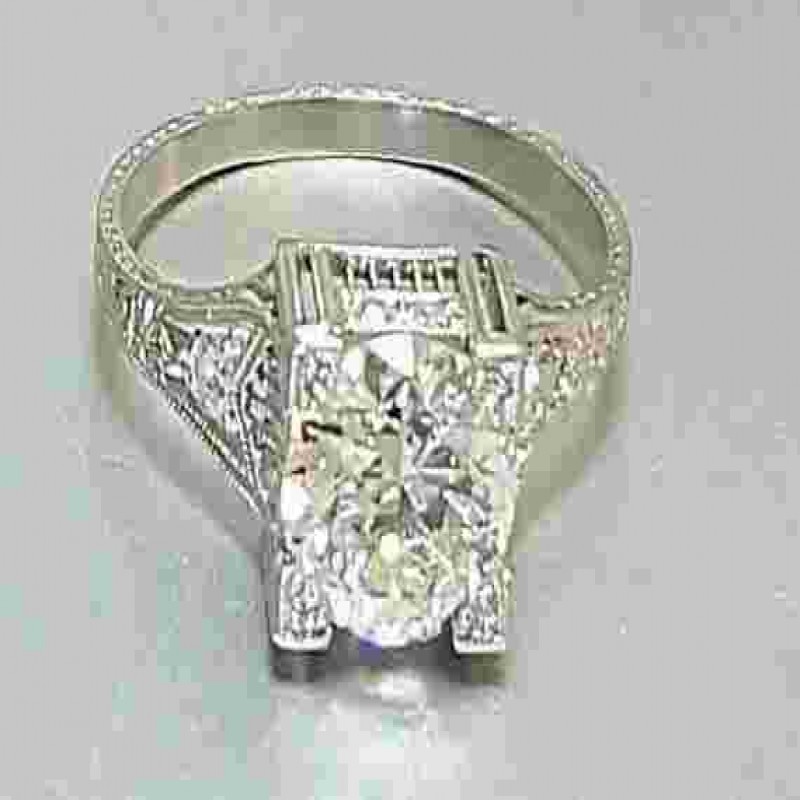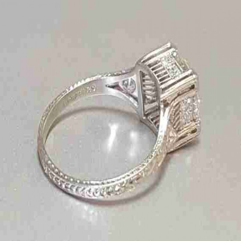 Yüzük, berraklık derecesi VS-1 ve renk derecesi H.2 olan yaklaşık 1.77 karat ağırlığında bir Avrupa kesim merkezi pırlanta ile ayarlanmıştır.