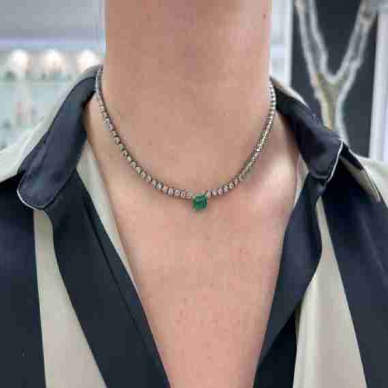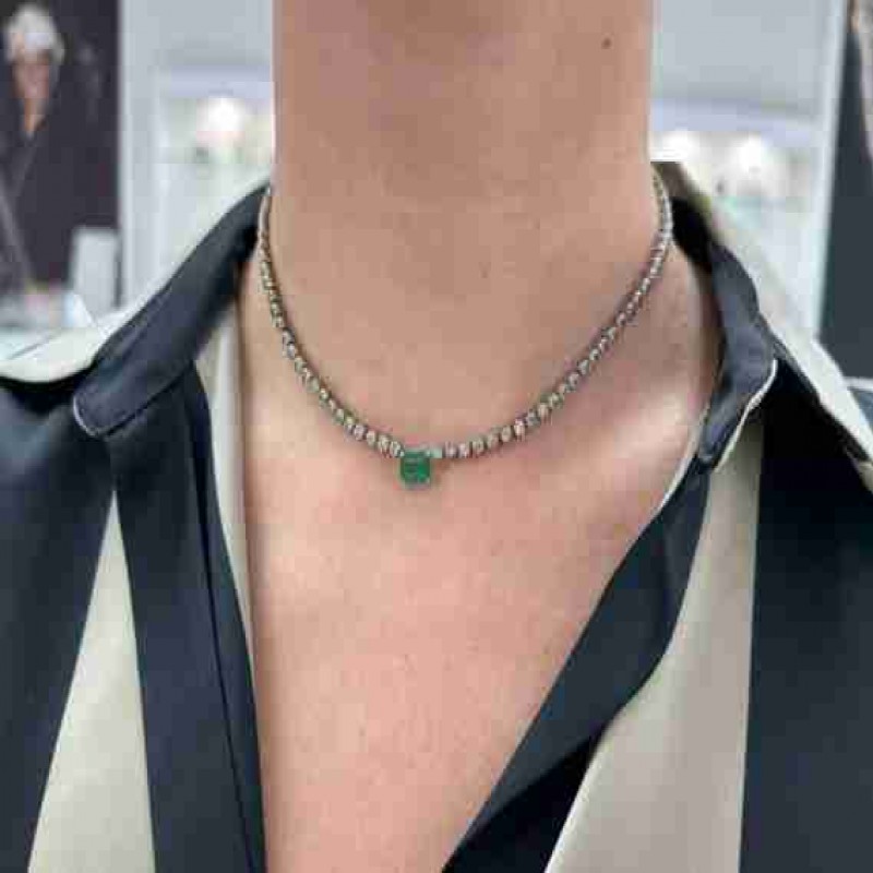 5.11tcw 14K Zümrüt ve Pırlanta Vintage Gerdanlık, Koyu Yeşil Zümrüt Kesim Zümrüt, Sekiz Uçlu Elmas 1570.0 TL |
