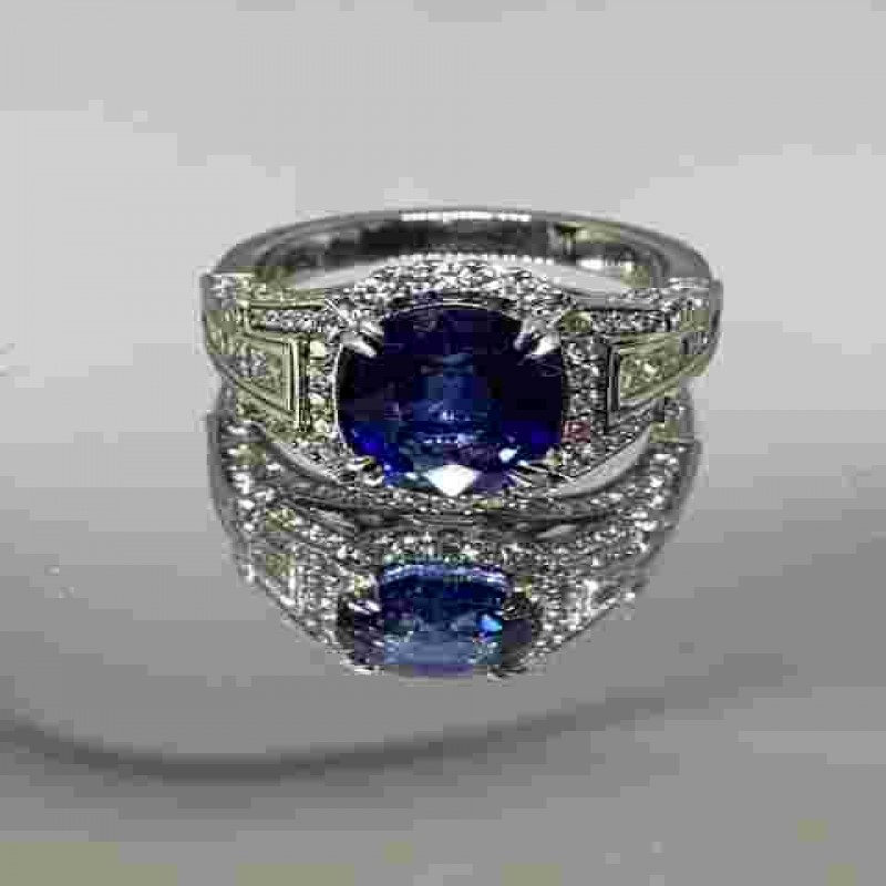 ortası ince Seylan safiri ve 1,26 karat beyaz pırlantalarla kesilmiş bu