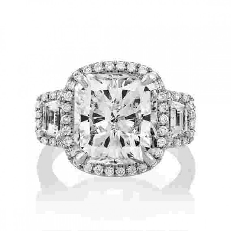 REZERVE EDİLMİŞ GIA 7.58ctw Estate Radyant Kesim ve Yamuk Pırlanta Nişan Halo 18kWG Yüzük 49995.0 TL |