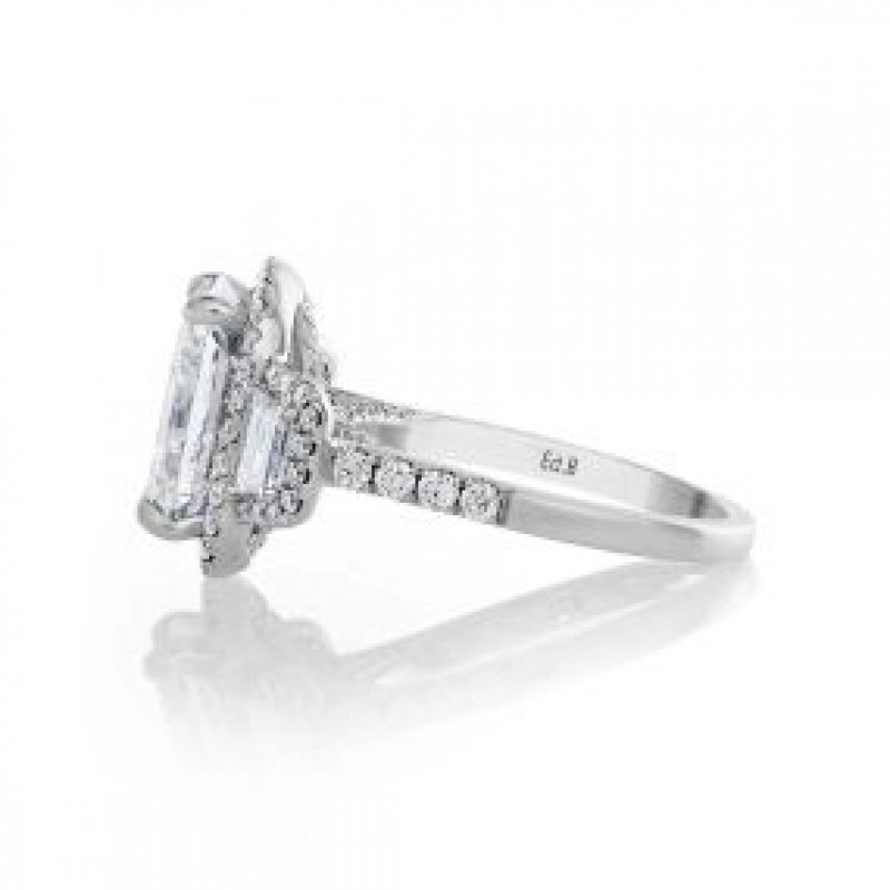 REZERVE EDİLMİŞ GIA 7.58ctw Estate Radyant Kesim ve Yamuk Pırlanta Nişan Halo 18kWG Yüzük