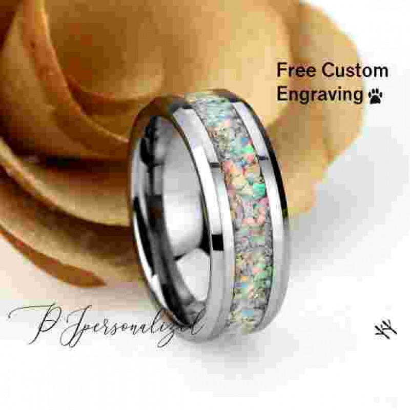 Onun ve Onun Tungsten Alyans Seti, Erkekler ve Wo için Beyaz Ateş Opal Kakma Tungsten Alyans 21400.0 TL |