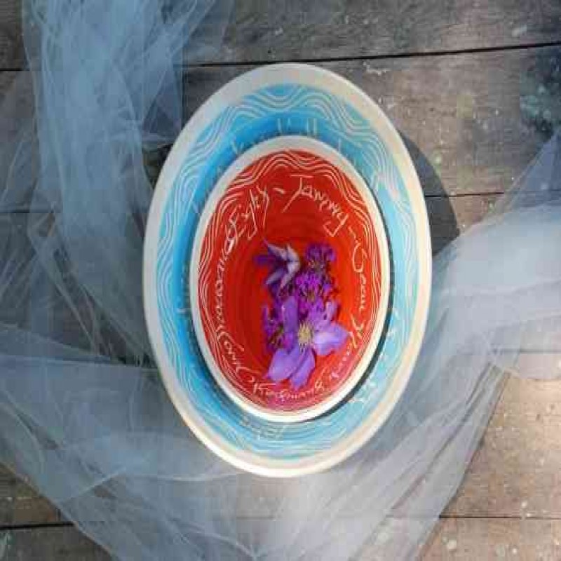 Bu, el yapımı seramik kaselerden (12" ve 8") oluşan bir settir ve yeni evli çift için mükemmel bir hediyedir! Evliliği kutlamanın ve tebrik etmenin ne güzel bir yolu!
