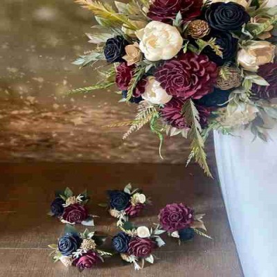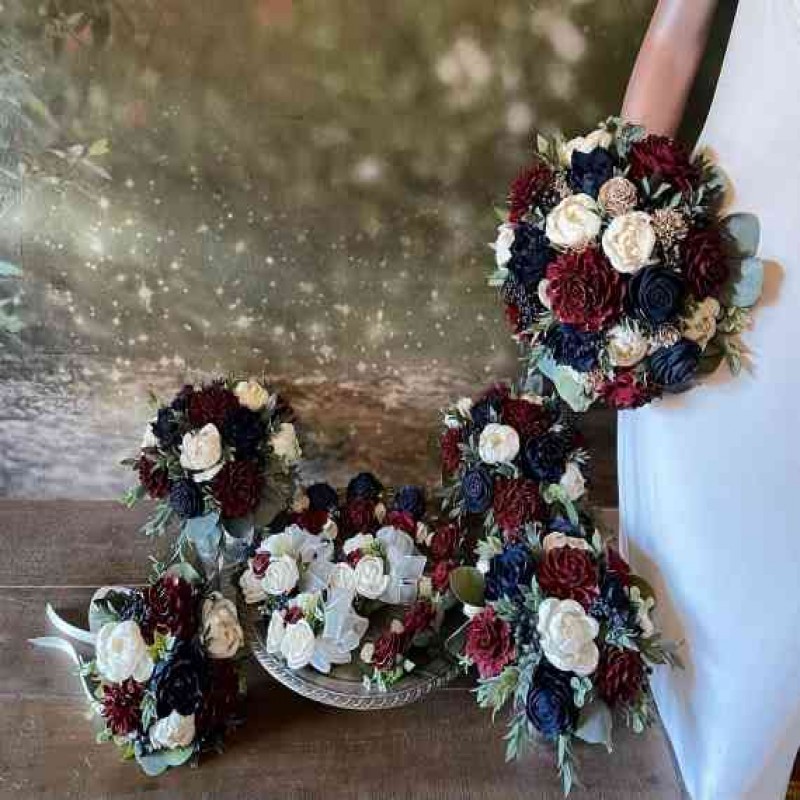 REZERVASYON LİSTE Bordo Şarap, Lacivert, Fildişi, Altın, Sola Wedding Bo'da Özel Düğün Paketi Buketi