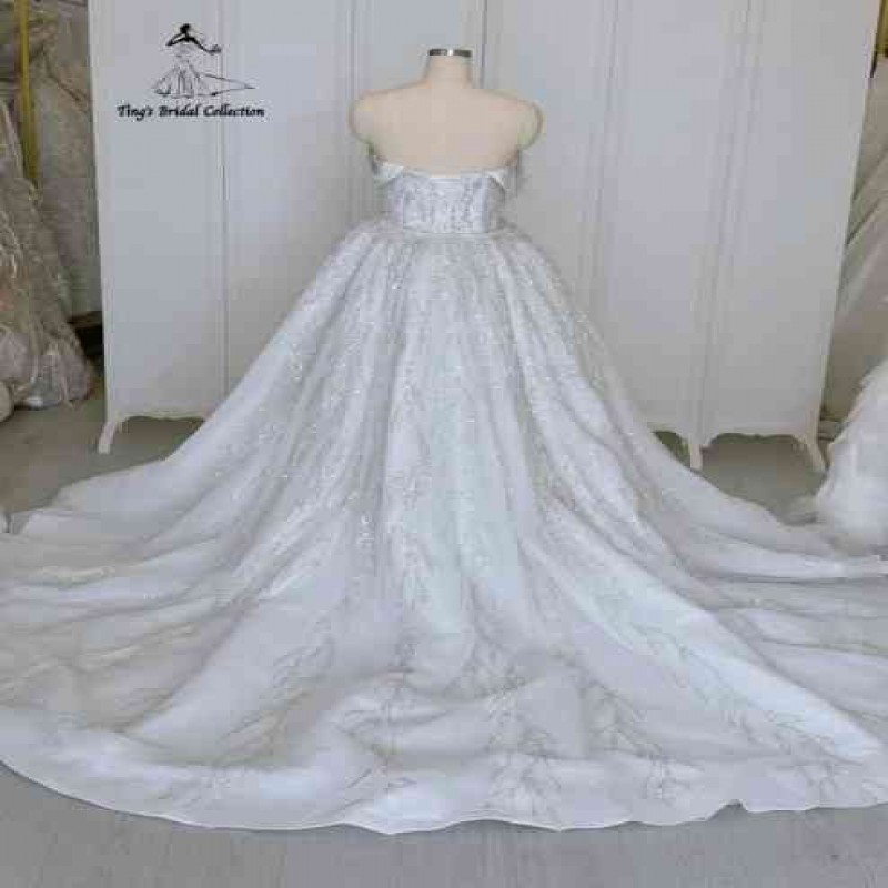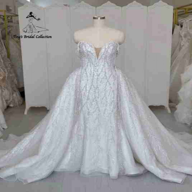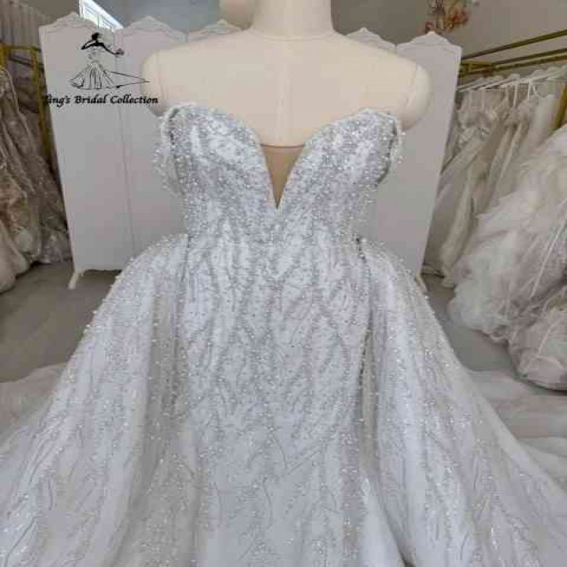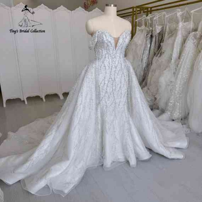 Stokta indirim Size12! Omuzları açıkta bırakan boncuklu dantelli lüks inci, ışıltılı 2'si 1 arada de 30120.0 TL |