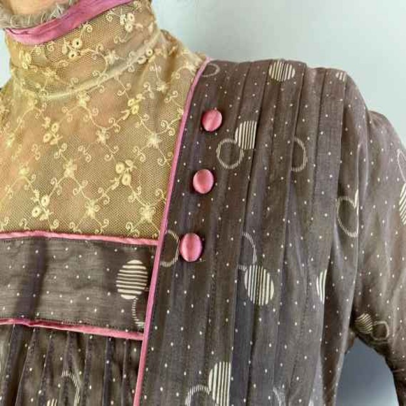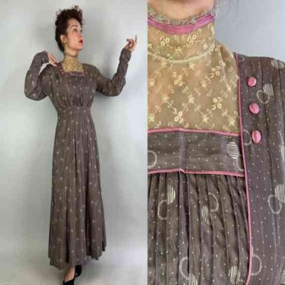 1910'lar İpek Elbiseli Dairesel | Antik Vintage Edward Dönemi Gençler Gümüş ve Fildişi Daire Baskı E