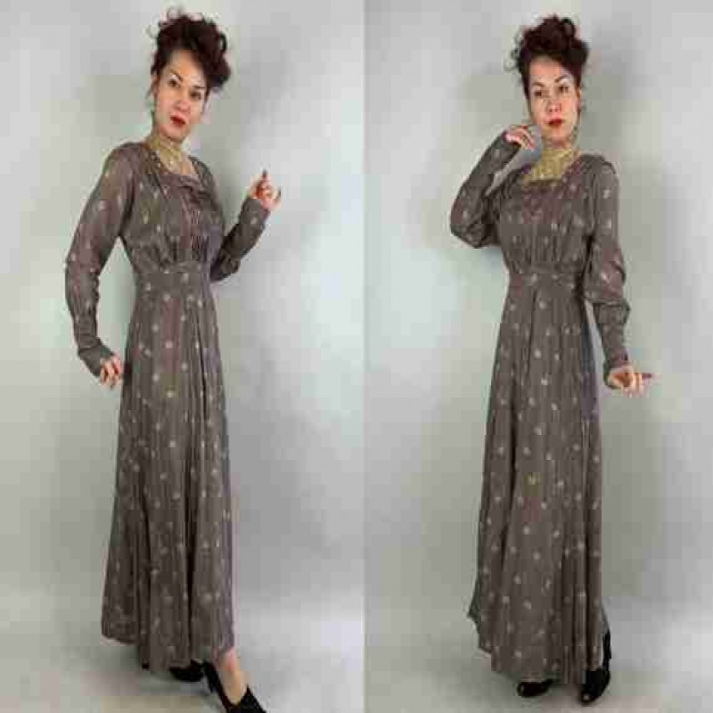 1910'lar İpek Elbiseli Dairesel | Antik Vintage Edward Dönemi Gençler Gümüş ve Fildişi Daire Baskı E 5750.0 TL |