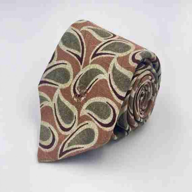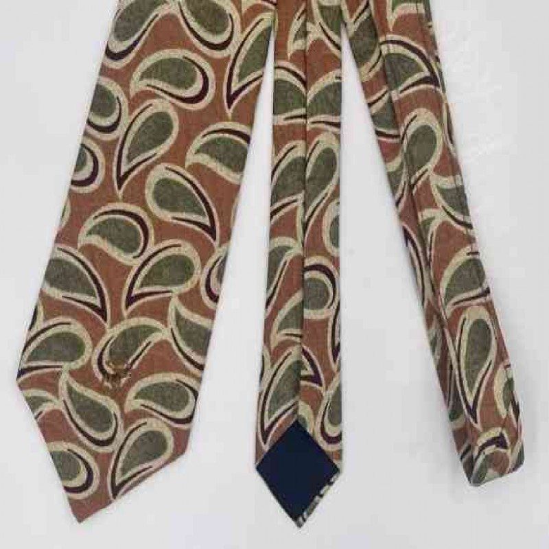 Dillards'ta satılan, Kontes Mara imzalı, kahverengi ve zeytin yeşili stilize şal desenli, 1980'lerden kalma bu vintage kahverengi ipek kravat, her gardırop için klasik ve sofistike bir aksesuardır. Kravatın uzunluğu 58 inç ve genişliği 3,75 inç olup malzeme bileşimi tamamen ipekten yapılmıştır ve bu da onu hem lüks hem de dayanıklı kılar.