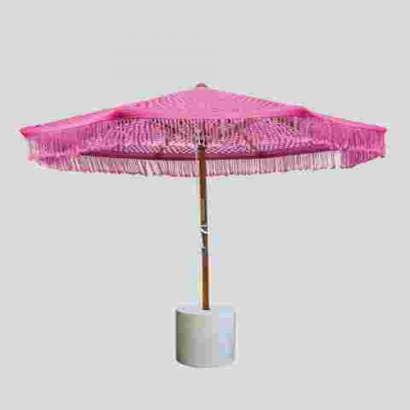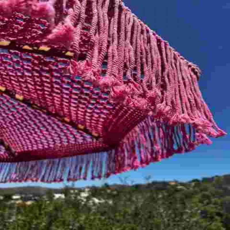 Tatildeymişsiniz gibi hissettirecek makrome şemsiyemizle arka bahçenizi veya verandanızı bir vahaya dönüştürün. Pamuklu makrome ipliği ile elle bağlanan şemsiyenin malzemeleri hava koşullarına dayanıklıdır ve bu da onu her türlü dış mekan iklimine uygun hale getirir. Lütfen bu ürünün UV veya UVA ışınlarına karşı koruma sağlamadığını unutmayın.
