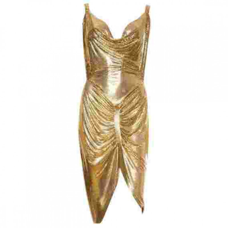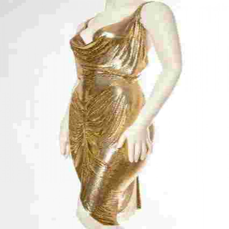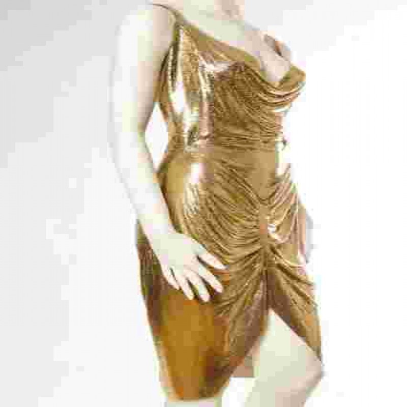 Altın kaplamalı Whiting ve Davis metal ağdan yapılmıştır. Bu gösteriyi durduran bir parça. Emily Ratajakowski bunun bir versiyonunu Paris'te giydi ve Vogue tarafından en iyi giyinen seçildi. Elbisenin ayrıca satın alabileceğimiz bir kapüşonu var. Boyut 0-4. Atölyemiz, vintage tarzın cazibesini çağdaş bir uyumla size sunan ideal ve güçlü bir parça yarattı. Parçanın uzun ömürlü olmasını sağlamak için tüm ağır stresli alanlar dahili el dikişleriyle yeniden güçlendirilmiştir. Başlık 21,5 inç uzunluğundadır. Bu elbisenin arkası açık olduğundan göğüs ölçüsü farklılık gösterebilir. Sipariş üzerine 10 hafta teslimat süresi ile üretilir.