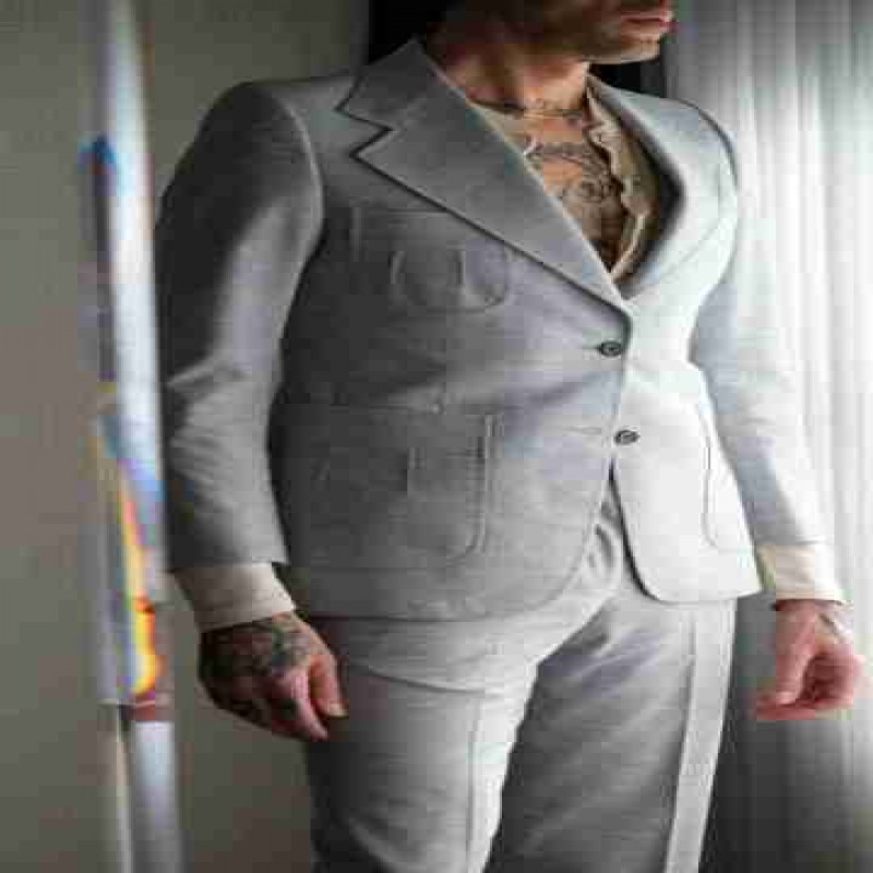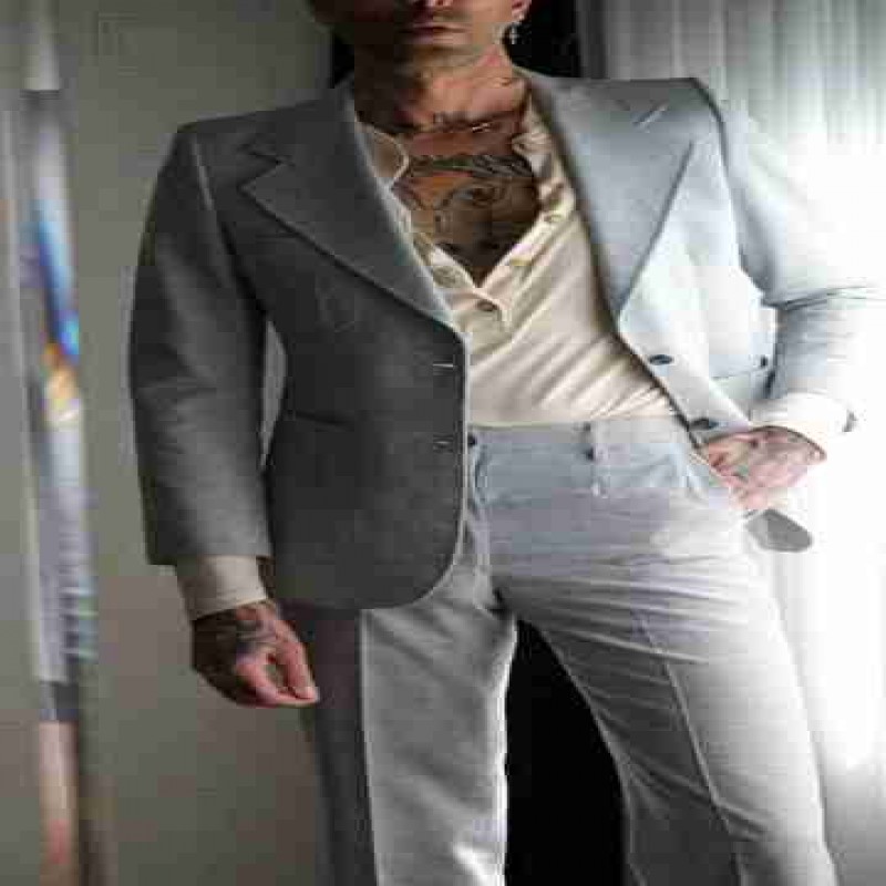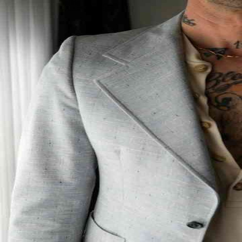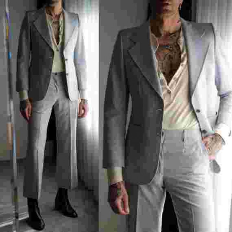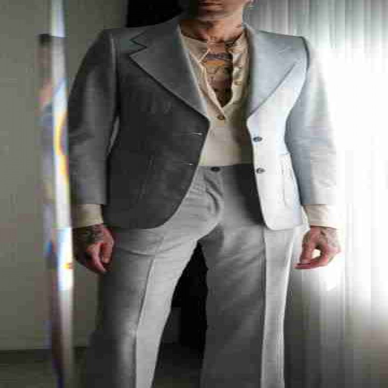 Vintage 70'ler PIERRE CARDIN BOUTIQUE Mavi Chambray Benekli Çizgili Parlama Bacak Takım Elbise | Par 1298.0 TL |