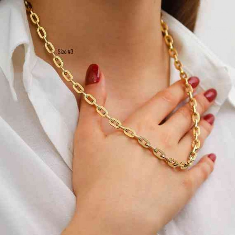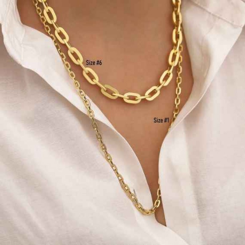 14 Ayar Altın 6mm Uzatılmış Bağlantı Zinciri | Kalın Zincir Kolye, Ağır İfadeli Kolye, Cesur Katmanl 43467.0 TL |