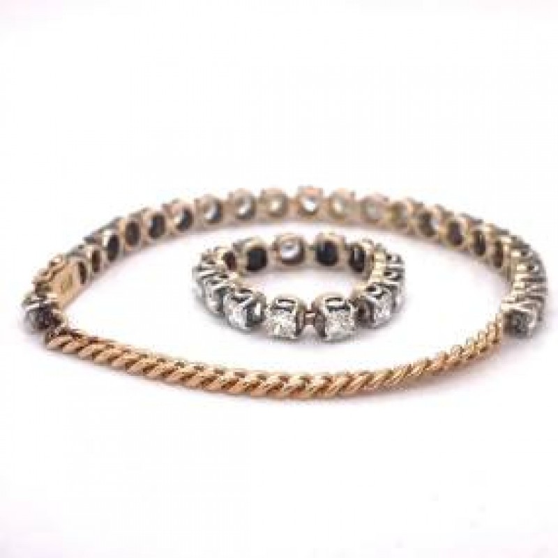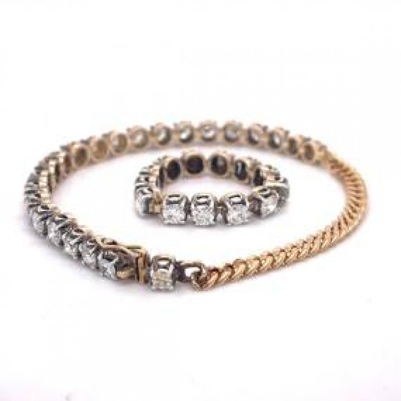 Yüzük ve Bilezik Takı Seti - 3.5CT Yuvarlak Doğal Pırlanta, 18 Ayar Sarı Altın, Takı Seti, benzersiz takı seti, Kadınlar için altın takı seti, burç taşı takıları