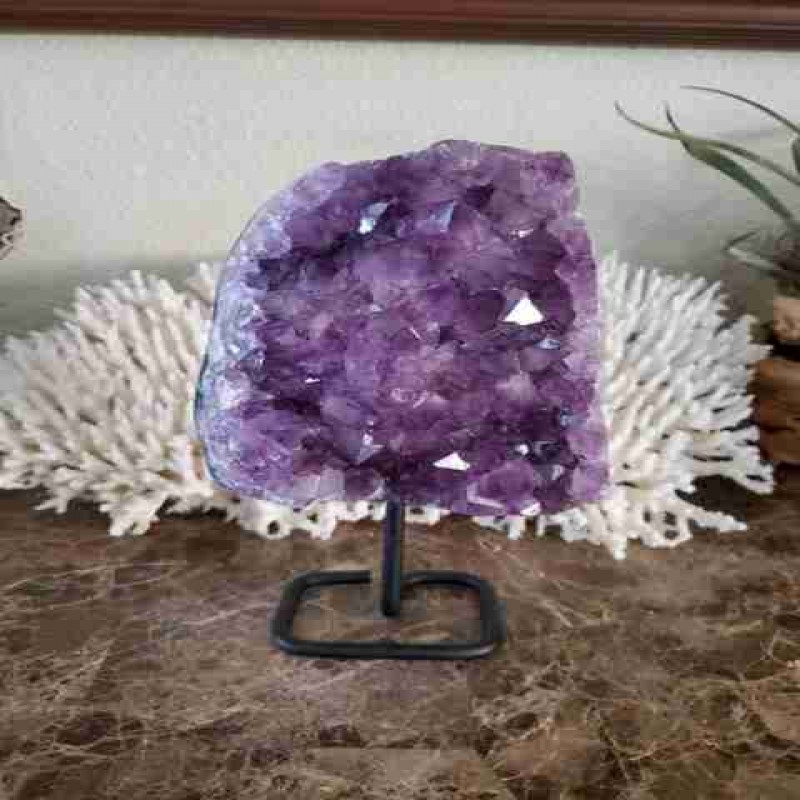 Ametist Kümesi - 5,8 lbs Metal stand üzerinde Mor Ametist - Ametist noktası - Ametist - Kristal - Ch 2011.0 TL |