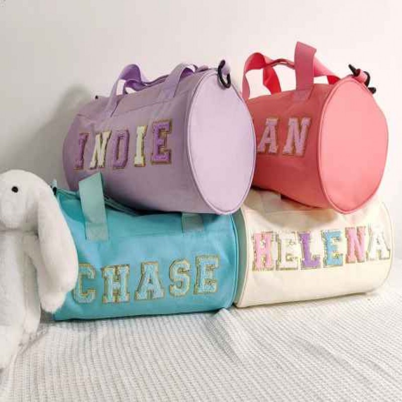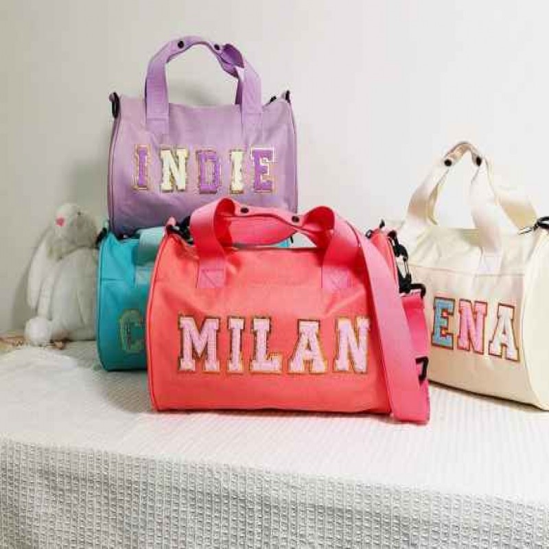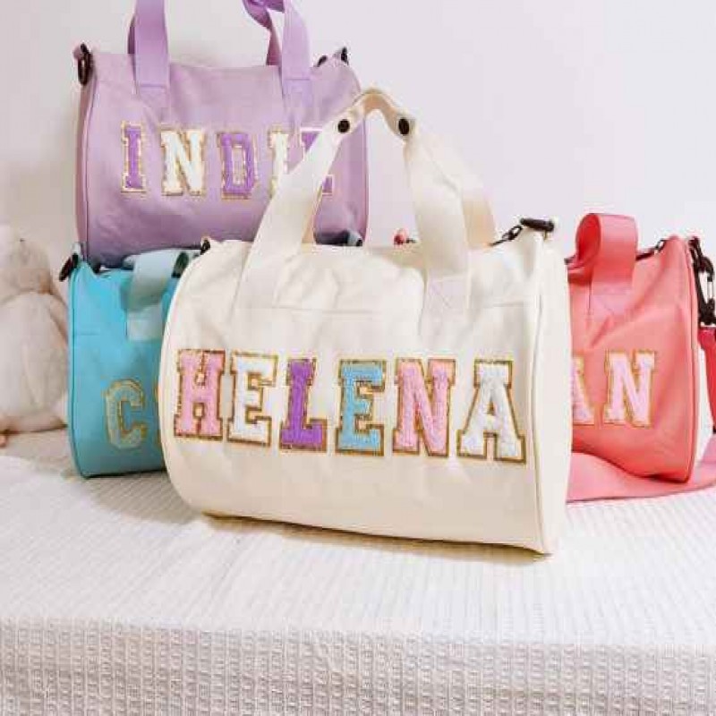 Su Geçirmez Duffel Dans Çantası, Kişiselleştirilmiş Şenil Harfli Küçük Geceleme Çantası, Çocuklar İç