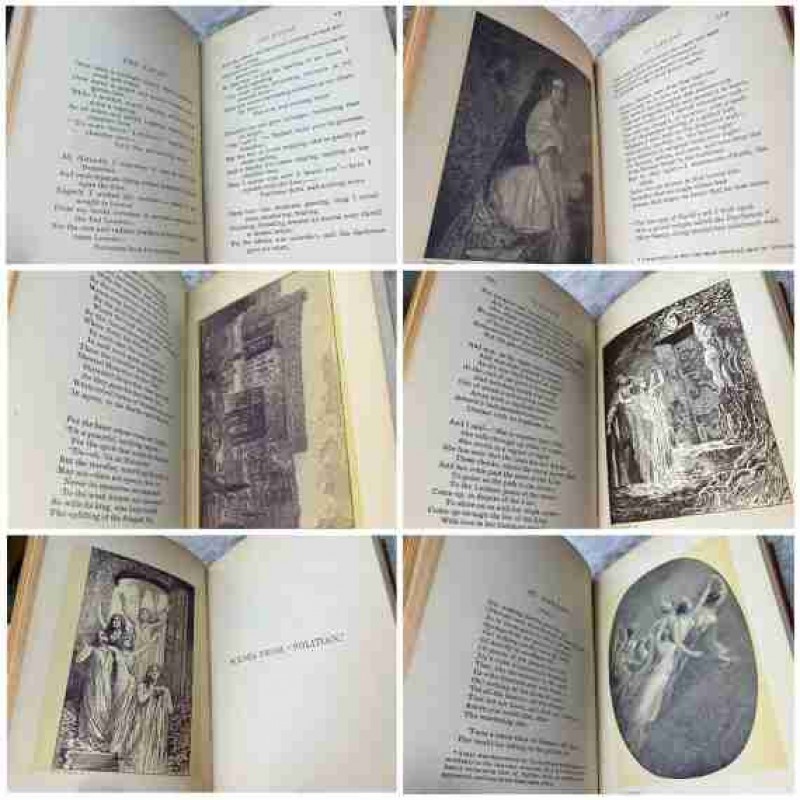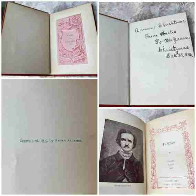 Her biri, damgalı yaldızlı kenarlık ve amblemli kırmızı ciltli bir bezle, damgalı harflerle kahverengi sırtların yanı sıra yaldızlı üst sayfa kenarlarıyla güzel bir şekilde ciltlenmiştir. Her birinin ekstra renkli bir başlık sayfası ve renkli bir başlık sayfasının yanında Poe'nun ön yüzü vardır. Baştan sona resimli. Bu iki baskı, bu özel cilt ve seri açısından İNANILMAZ DERECEDE AZDIR.