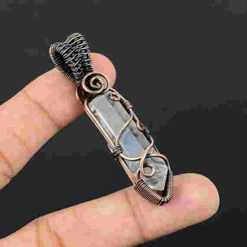 Şeffaf Kuvars Şifa Kristali Kolye Ucu, Bakır Tel Sarılı Kolye Ucu, Şeffaf Kuvars Ucu Kolye Ucu, Doğa
