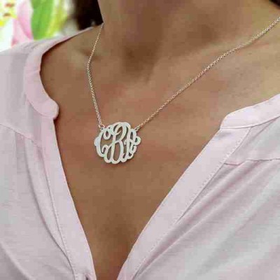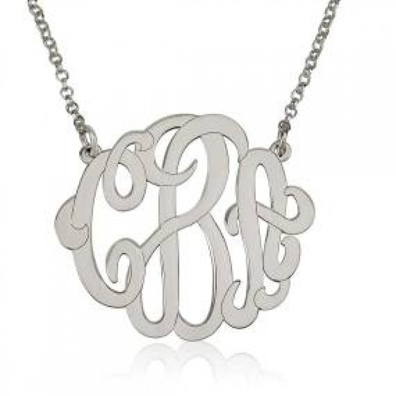 Monogram Kolyesi - 1.2 inç - Noel Hediyesi İçin Kişiselleştirilmiş Kolye - 925 Ayar Gümüş